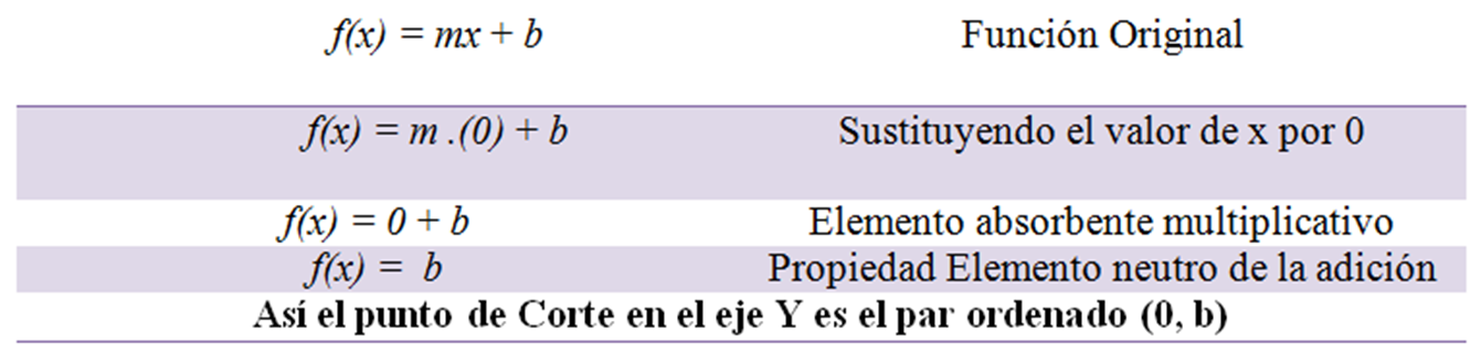 Corte con el eje Y: Para conseguir el punto de corte de una función afín en el eje Y, se debe sustituir el valor de la variable x por cero (0). Es decir, si: